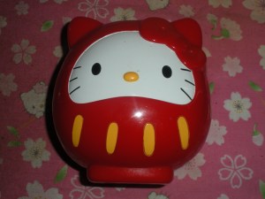 A Hello Kitty bento. It’s now used as a sugar bowl.