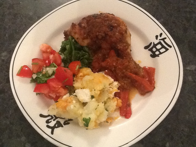 Jamie Oliver style Peri Peri chicken with smashed potato salad, rocket salad and tomato salsa