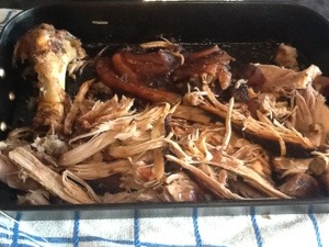 I’ve had this leg of pork slow roasting in the oven since 10am this morning. It’s been smelling amazing all day, and the results are well worth the wait.