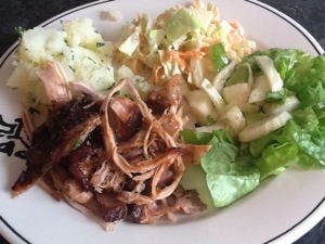 Served with coleslaw, pear & fennel salad and herby potatoes.