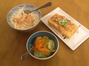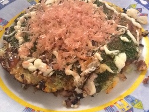 Steve’s parents Peter and Judy are in Perth for a visit so they will be joining us for dinner tonight. By request from Judy we will be having okonomiyaki. Trying to cook four at once proved too much for our stove top and the fuse blew twice, so I’m currently trying to cook two at a time. I’ve also used the left over slow cooked pork, which I’m hoping works out ok.