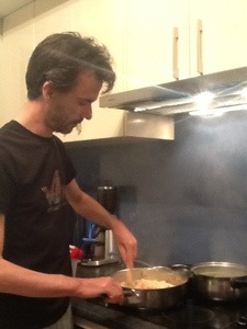 Yoga again tonight so Steve cooked dinner. Risotto with tomato, bacon, peas, spinach.