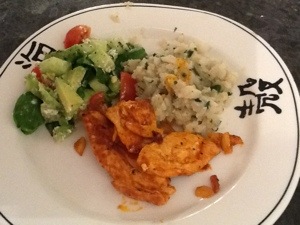 So I managed to cook up some paprika chicken, garlic mashed cauliflower and a salad of random things I found in the fridge.