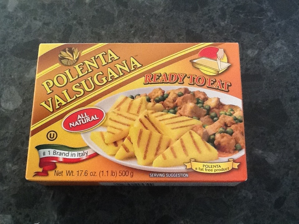 I bought this from the Re Store the other day, not really paying much attention, and assuming it was just normal polenta. Turns out, it IS normal polenta, however it’s apparently already solidified in a rectangle, ready to fry up and eat.