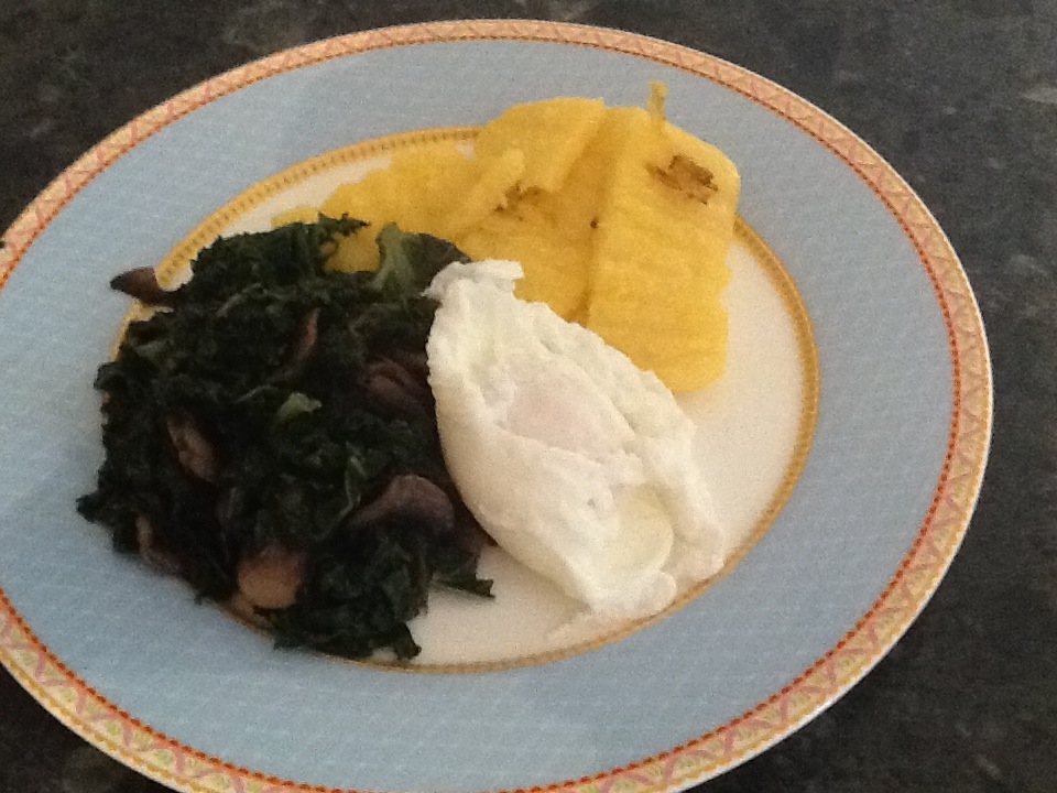 I’m cooking up some kale and mushrooms to go with it. As an interesting side note, I found both a dead lady bug and a fly hidden amongst the kale whilst washing it. I’m always amazed at people who don’t wash salad/spinach/kale whatever before cooking/eating it. I mean, imagine chopping in to a lady bug half way through your meal? Unpleasantness.