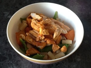 “Warm Chicken and Pasta Salad” is the official name of tonight’s dinner.