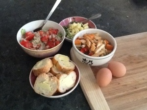 Dinner tonight is a random assortment of leftovers and other such things.