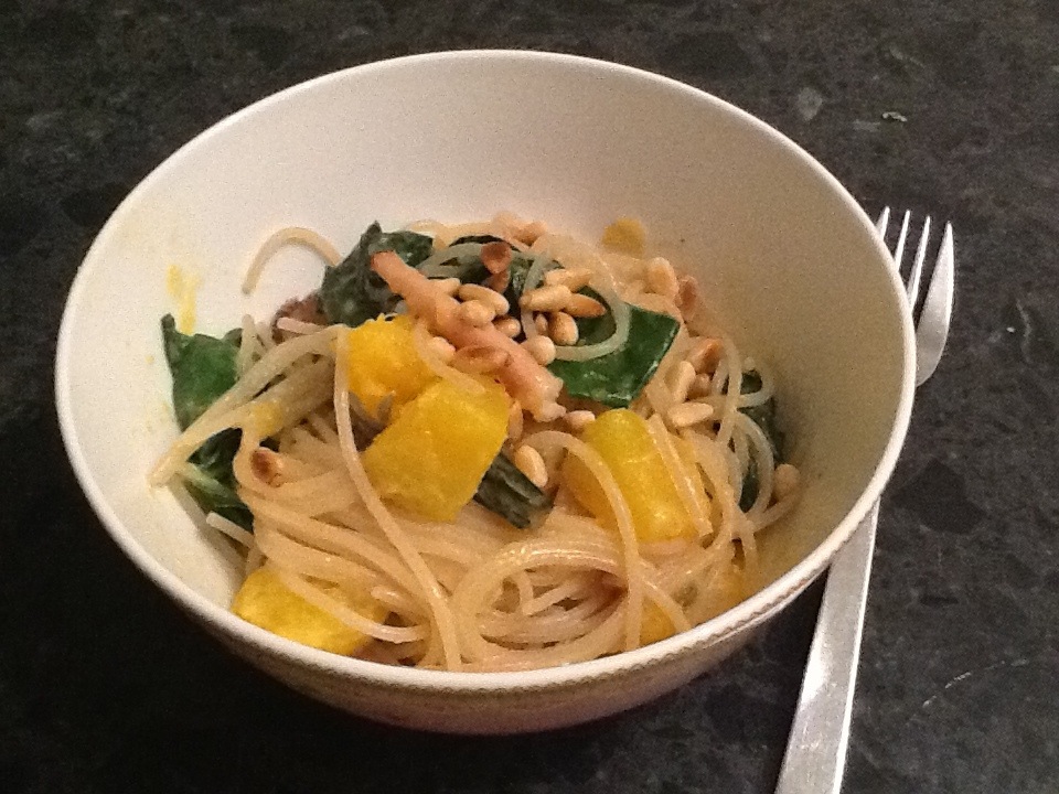 Went to yoga today after not going for the last four weeks due to illness. Steve cooked Jamie Oliver pasta with pumpkin and spinach n stuff.