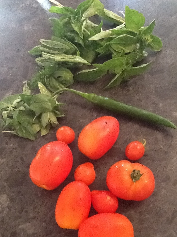 I’m making pizza tonight, and will be using some things from my garden. Basil, oregano, tomatoes & chilli.