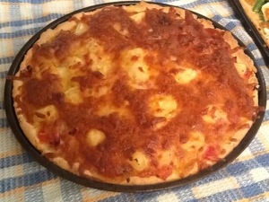 Ham, pineapple & mozzarella with a tomato base made from our garden tomatoes.