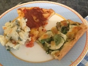 And the “Green Pizza” – cashew pesto (basil from garden), asparagus, zucchini, avocado & boccincini.
