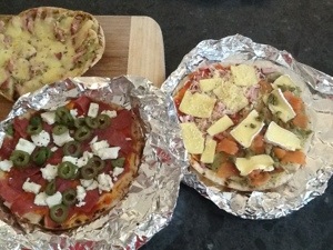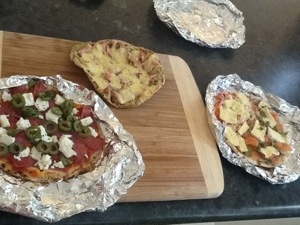 Trying to use up leftovers in the fridge, I made some pizzas with the leftover pita bread I had.