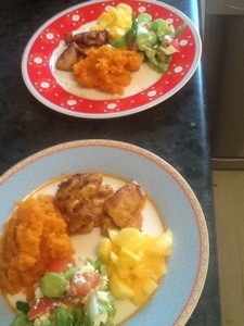 Keeping it simple tonight. Paprika chicken, cumin spiced mashed sweet potato, salad and mango.