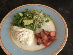 Poached egg & bacon with a green salad. Couldn’t be bothered making proper dinner tonight 🙂