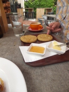 Steve had house made crumpets with honey that they make right there on the premises. (We saw the bees!)
