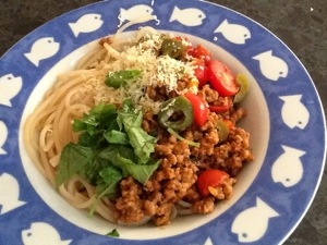 This is “Summer Bolognese” from the new issue of Donna Hay magazine. It just looked nice and tasty, and is a bit different than how I would normally make Bolognese so I thought I’d give it a go.