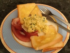 So the previous plan of making Lamb Biryani for dinner has been changed to scrambled eggs and bacon.