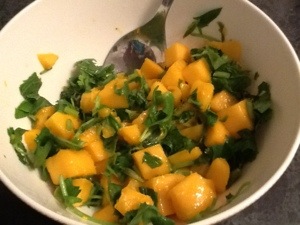 Late dinner tonight…it’s nearly 9pm! But we managed to make the Lamb Biryani we have been planning on making for days. Also a cucumber raita (the cucumber was frozen…stupid fridge…so I hope it’s ok) & mango salsa.