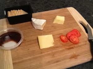 Home again now and starving, so supplementing dinner with some cheese and crackers.