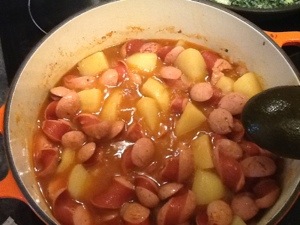 It’s from the 70’s and it’s got many a favourite Austrian recipe in it. I’ve finally gotten around to cooking a recipe from it, and I went with a Potato & Wiener sausage goulash. I’ve been looking for a recipe for this for a long time, but Internet searched have proved fruitless, so I was super stoked to find one in here.