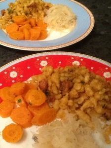 And here it is! Served with carrots and sauerkraut! (It tastes pretty good too!)