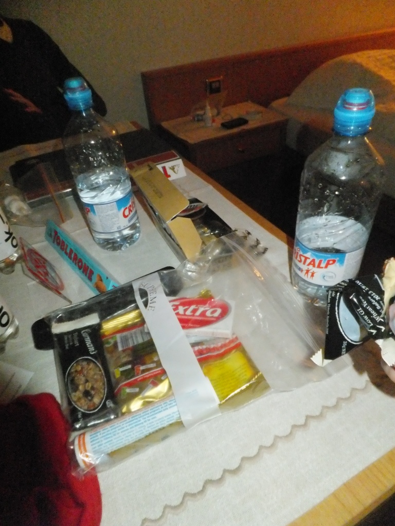 Well after 11 hours from Perth to Dubai, 4 hours at Dubai airport, 7 hours from Dubai to Geneva, 3 hours by train from Geneva to Visp, then finally 1 hour by train from Visp to our final destination of Zermatt. We made it! Hooray! Exhausted, we eventually found our hotel, then went to try to find some dinner. I was feeling a like I was getting a cold, which was pretty disappointing. That coupled with lack of sleep and just basic exhaustion, we weren’t really keen to have dinner at a restaurant. We set out to look for a bakery or supermarket, but sadly it was just after 7pm and all of these places shut by 7pm in Zermatt. We attempted to go into a pizza restaurant, but the Maitre De took one look at us and decided his restaurant was full (well, it probably actually was full). Defeated, and exhausted, we headed back to our hotel where we had museli bars (packed from home for such an emergency) & crackers (squirrelled away from lunch on the plane) for dinner and then prompt