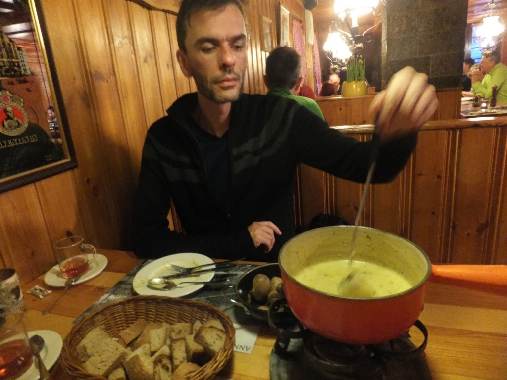 For dinner, I was determined to have fondue. We are in Switzerland after all. We ended up going to a little place called Cafe Du Pont, which at first seemed a little scary, but was actually really cool, nd cosy and full of locals. We had a another Jäger Tee and the herby fondue which came with kilograms of bread and potatoes. It was good, but soooo much food. It could have easily feed 4 people.