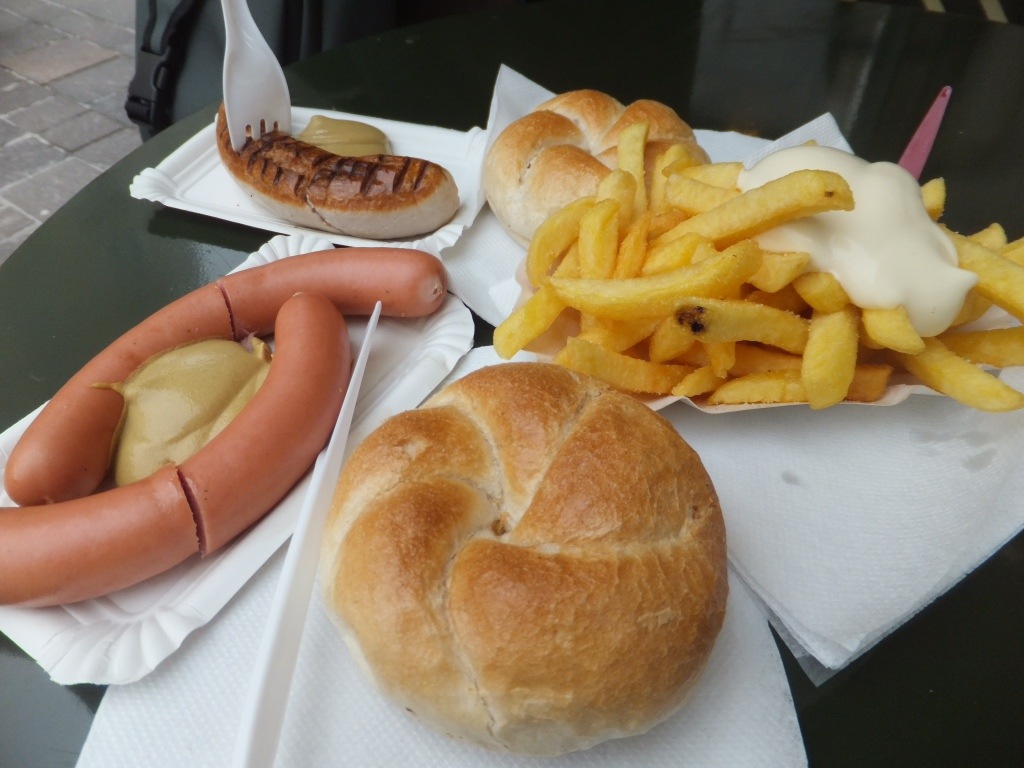 Full up from the cake we didn’t really feel like a big dinner, so opted for sausages and chips from the sausage cart in Alter Markt. It was freezing standing outside eating it, but it was very tasty.