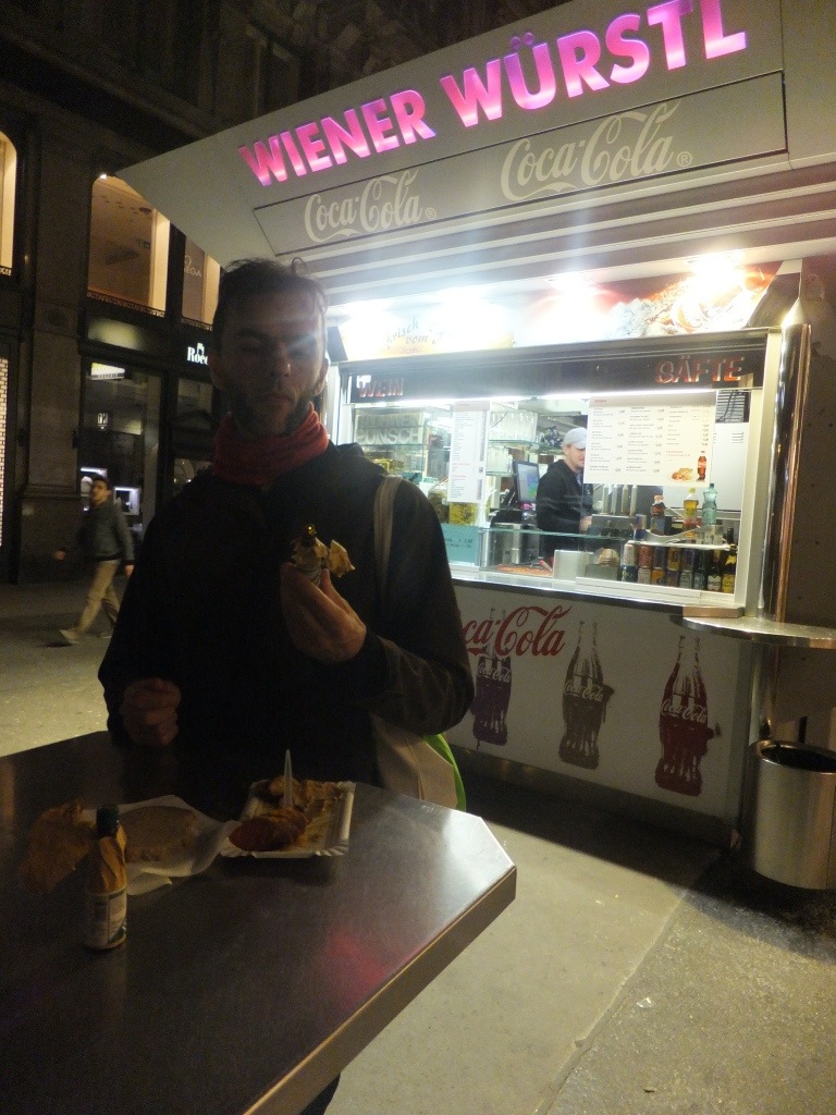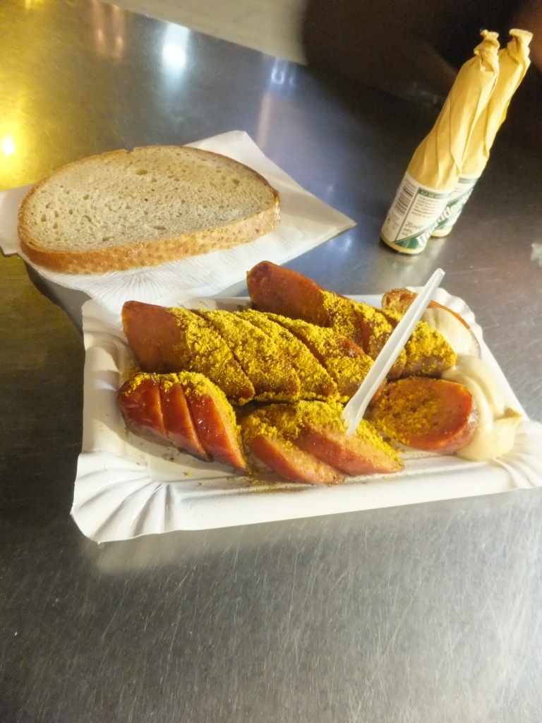 On the way back to our apartment we stopped at a Wurstl stand and had a curry wurst and an Underberg.