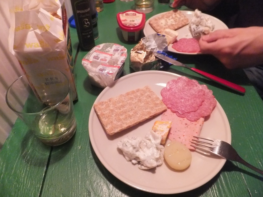 Stopped again, for a quick Whisky tasting at the local Whisky shop. Then home for the rest of our dinner provided for us by Rewe supermarket.