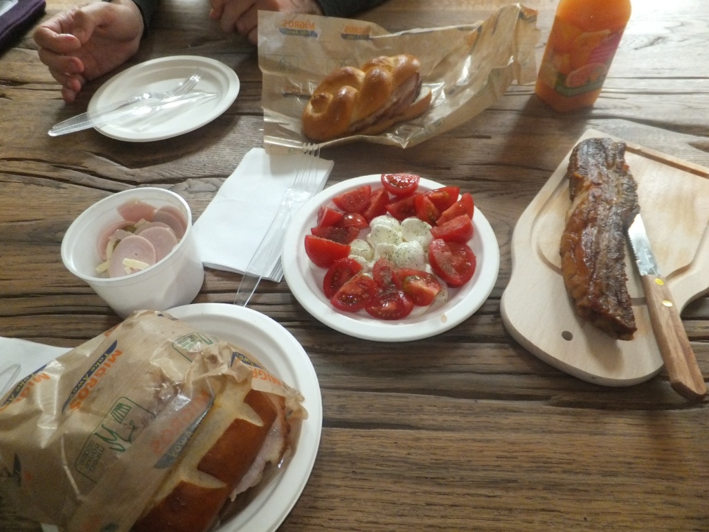 We left Frieburg for Bern, Switzerland today. Bern is beautiful, but woah, is it expensive! I would even go so far to say that it is more expensive than Perth! Steve was feeling a bit sick, so we didn’t really want to spend hundreds of dollars on dinner. So we went to our fave supermarket Migros and stocked up. This particular Migros also has a takeaway section, so we got some delicious shinken rolls and a pork rib that I couldn’t resist.