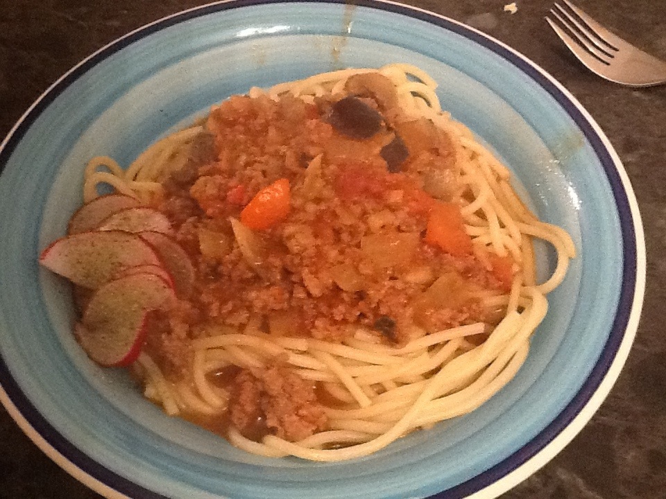 Spaghetti bolognaise. Made with grass fed beef from Gin Gin which we have been getting from the Subiaco Farmers Markets. We dont normally eat a lot of beef, but this stuff is good.