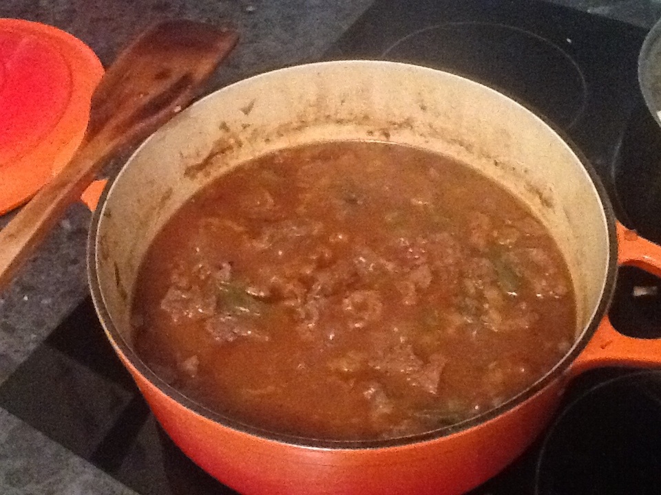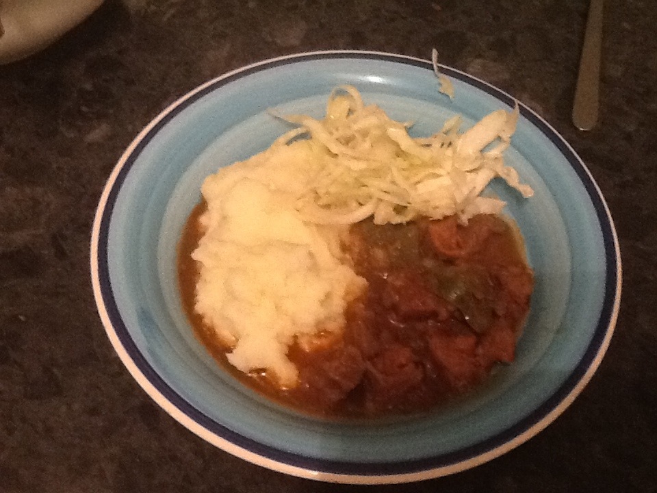 Along with the Gin Gin beef mince that we had yesterday with the spaghetti, we also got some stewing beef to make goulash for tonight’s dinner. I made lots so there’s enough for tomorrow nights dinner too. Having it with mashed potatoes and kraut salat (which is my favourite thing at the moment)