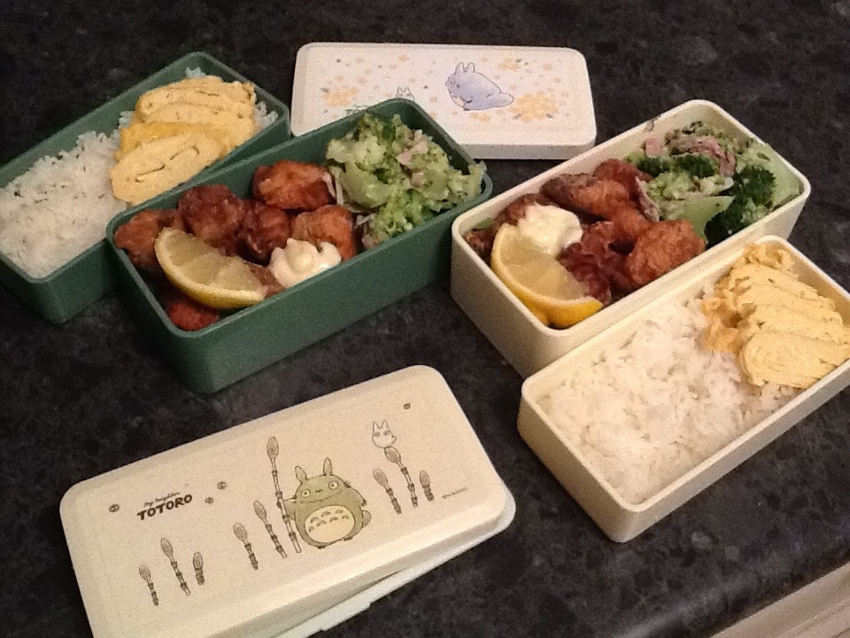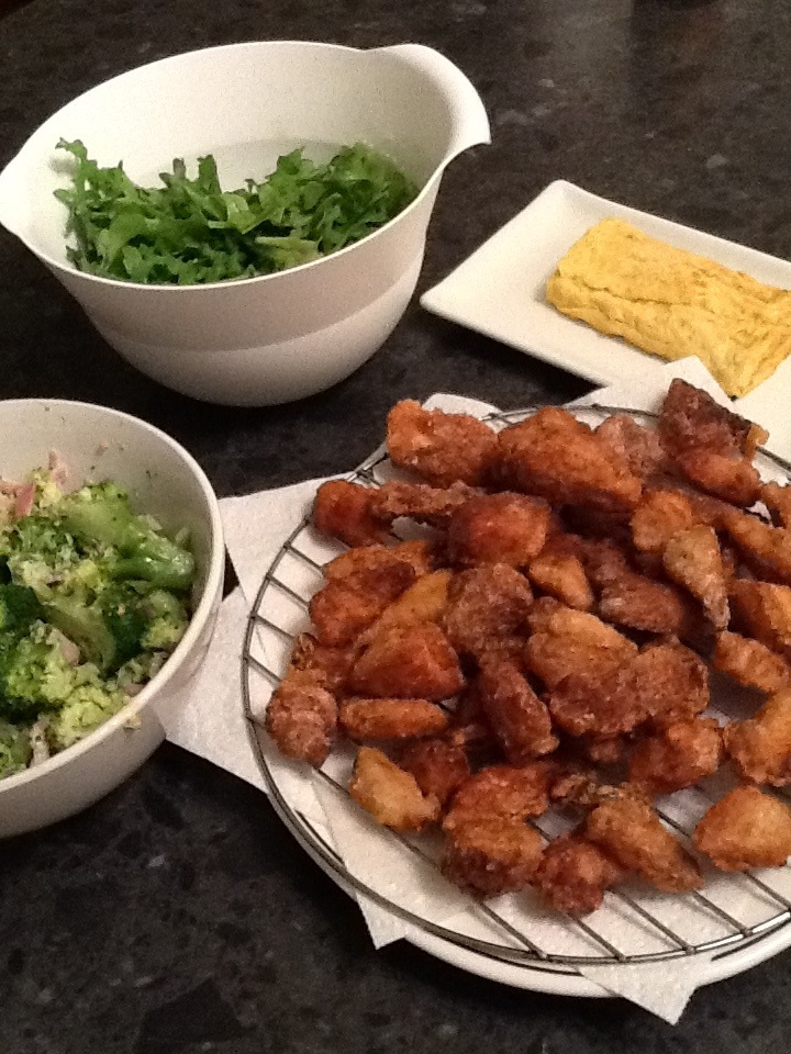 Karaage chicken, tamagoyaki, broccoli salad & rice. Itadakimasu!