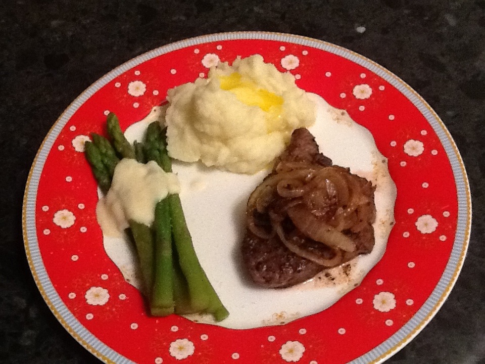 I felt like nice plain, simple food today, and in particular, steak. I don’t eat a lot of steak, maybe that’s what I’m doing wrong? Who know…I just want to be healthy again!