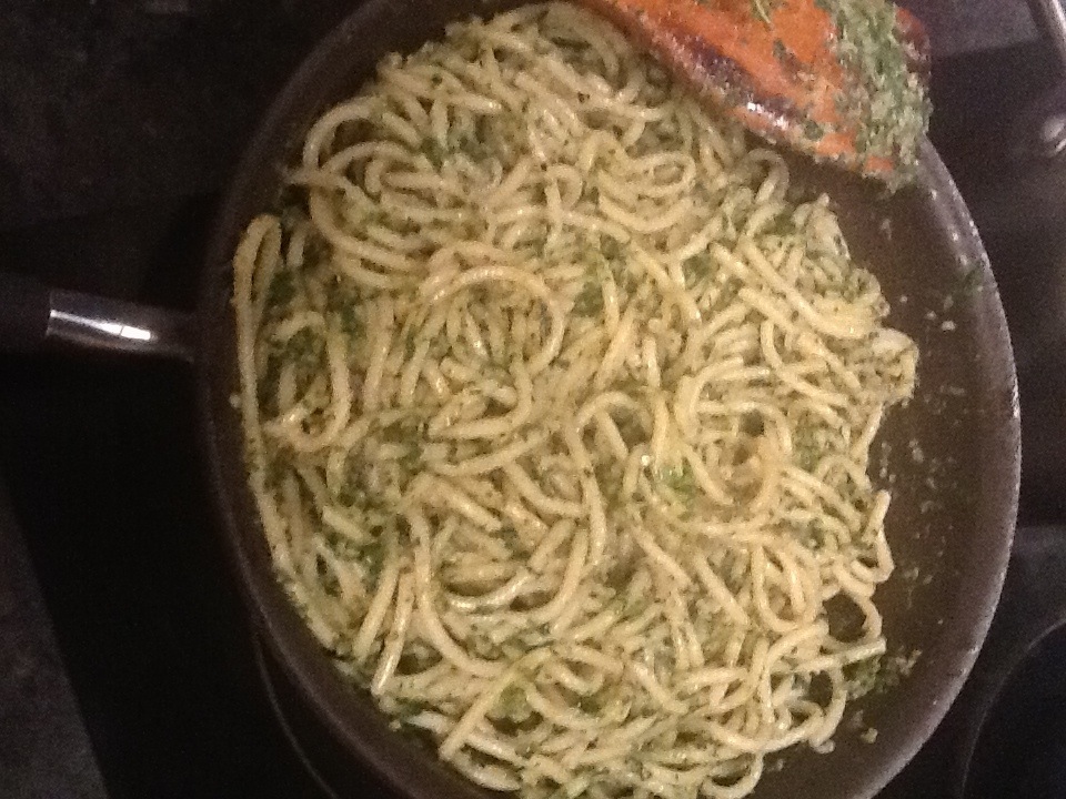 Arugula (rocket) pesto pasta. And orange, lemon & lime juice.