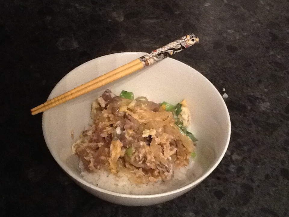 Beef & egg rice bowl or Gyudon. Starting to feel a little bit better today, thank god. This cough has been driving me insane!