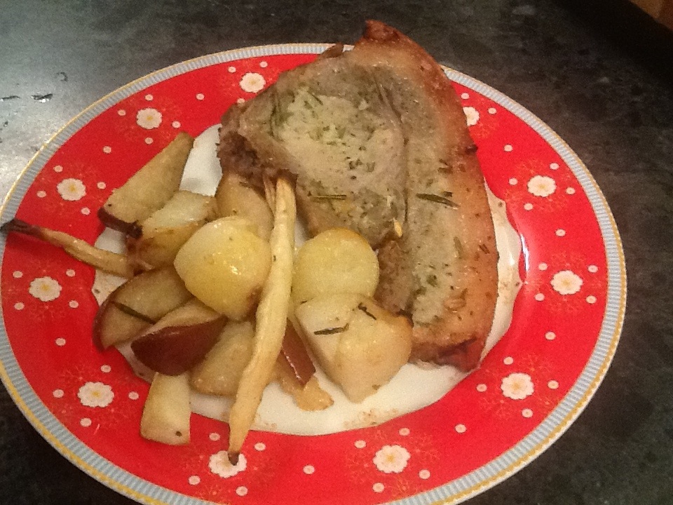 This is an old Jamie Oliver recipe from way back when. I used to make it all the time, but in recent times I seem to have forgotten about it a bit. I call it the “P” meal – because it’s consists of Pork chops, parsnips, pears & potatoes. It’s a good hearty winter meal.