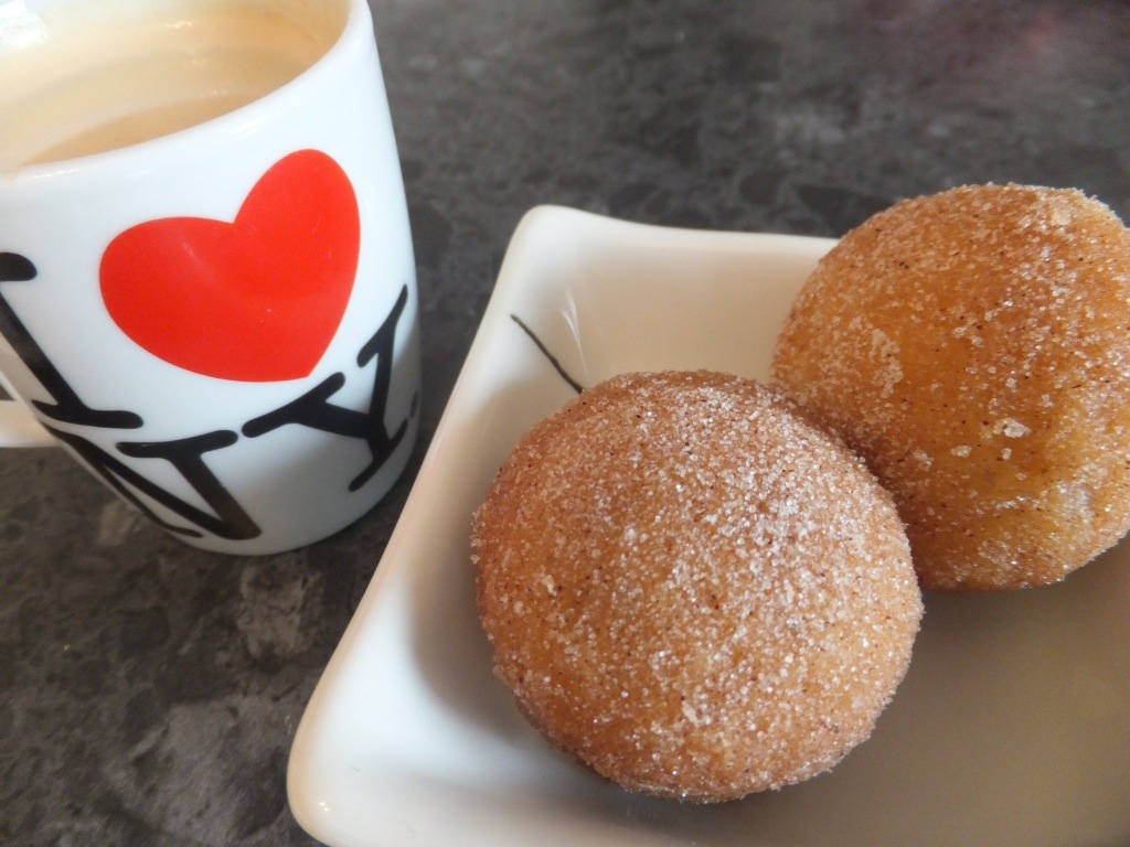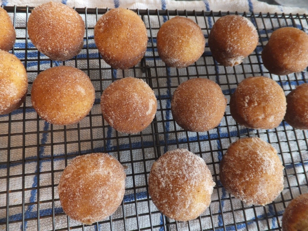They are soooooooo quick and simple to make! They don’t contain egg which was a surprise, but they worked really well. Once they’ve cooled, they get coated in butter, then rolled in sugar and cinnamon. Yum!