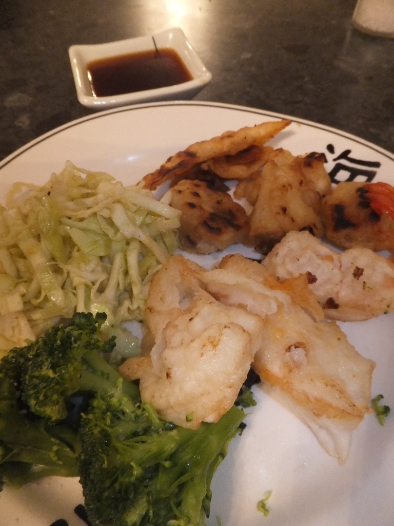 I made so much tempura last night that we ended up having leftovers for tonight’s dinner. Hooray! Made a cabbage salad too.
