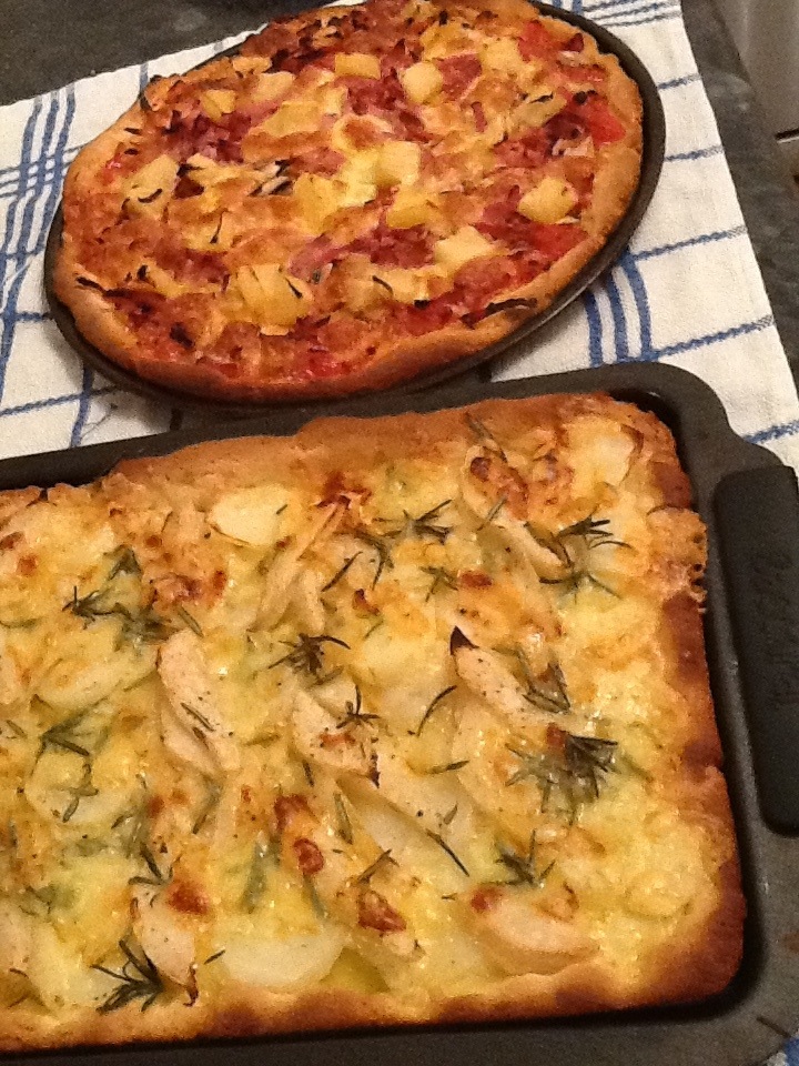 For now, please enjoy my 365th meal – Pizza! (Potato & pear and ham, mushroom & pineapple)