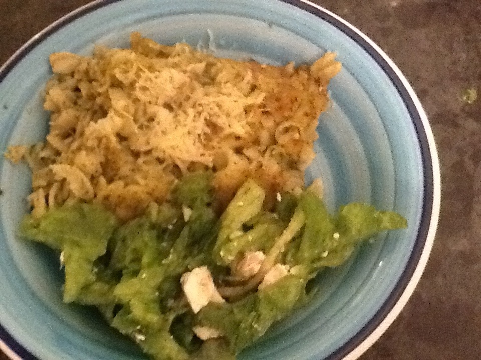 Arugula/Rocket & walnut pesto pasta with a pumpkin seed oil salad. (Please note: I just ran out of the first of my two bottles of pumpkin seed oil that I brought home from Austria 😦 this is very sad news)