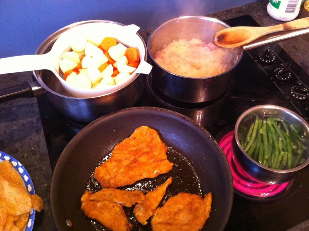 Made truckloads of chicken schnitzel. My aim was to have sufficient leftovers for tomorrow, but there really is a lot.