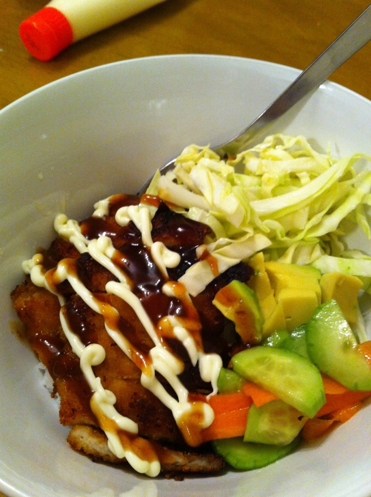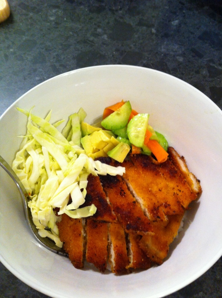 And like magic I turned a German meal into a Japanese meal. Leftover chicken schnitzel turned into chicken katsu. Cabbage instead of sauerkraut and rice instead of potatoes. Food is pretty much the same the world over when you think about it.
