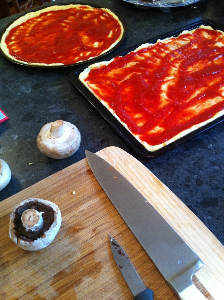 Making pizza tonight (of the gluten free variety). As a side note, I used two eggs on the pizza base dough and both eggs were double yolkers. How about that?