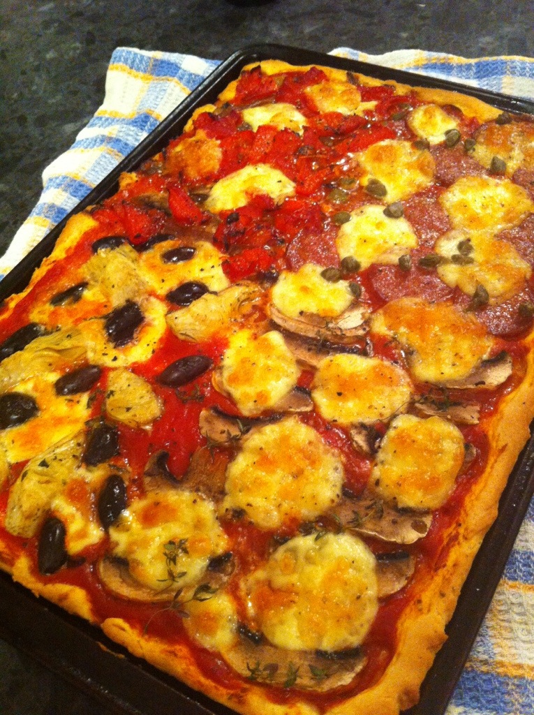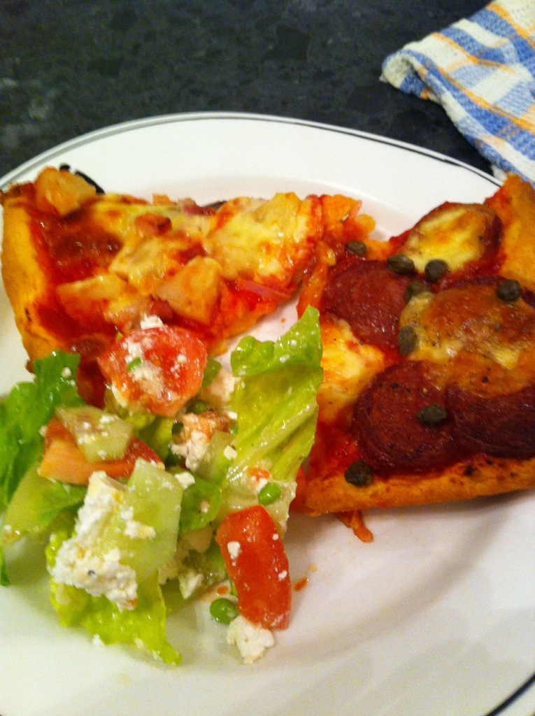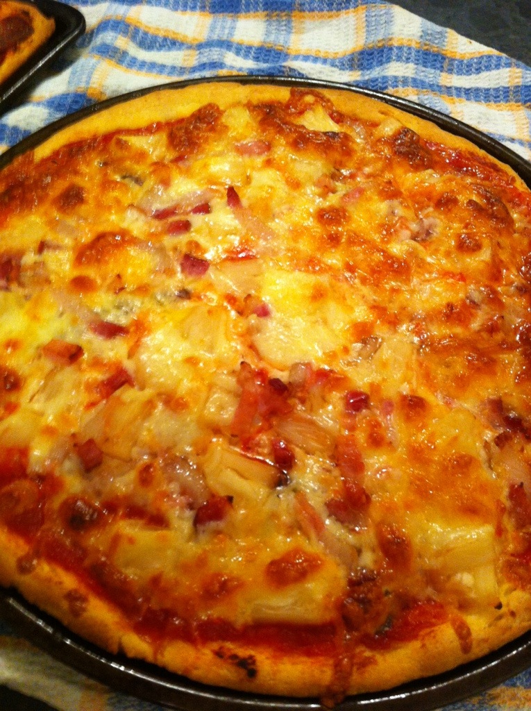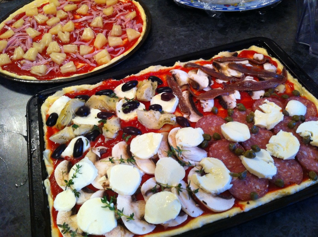 Pizza being prepped – we have a ham, pineapple & anchovy and a “four seasons pizza. I’m not really sure what that means, but it has 4 different sections of pizza.