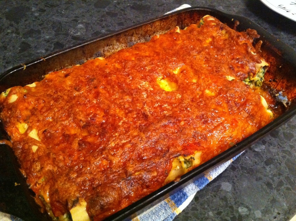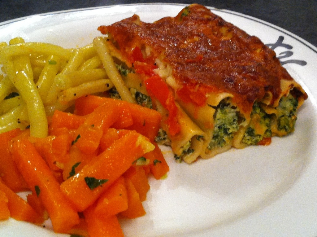 Spinach & ricotta cannelloni with herby carrots & butter beans.