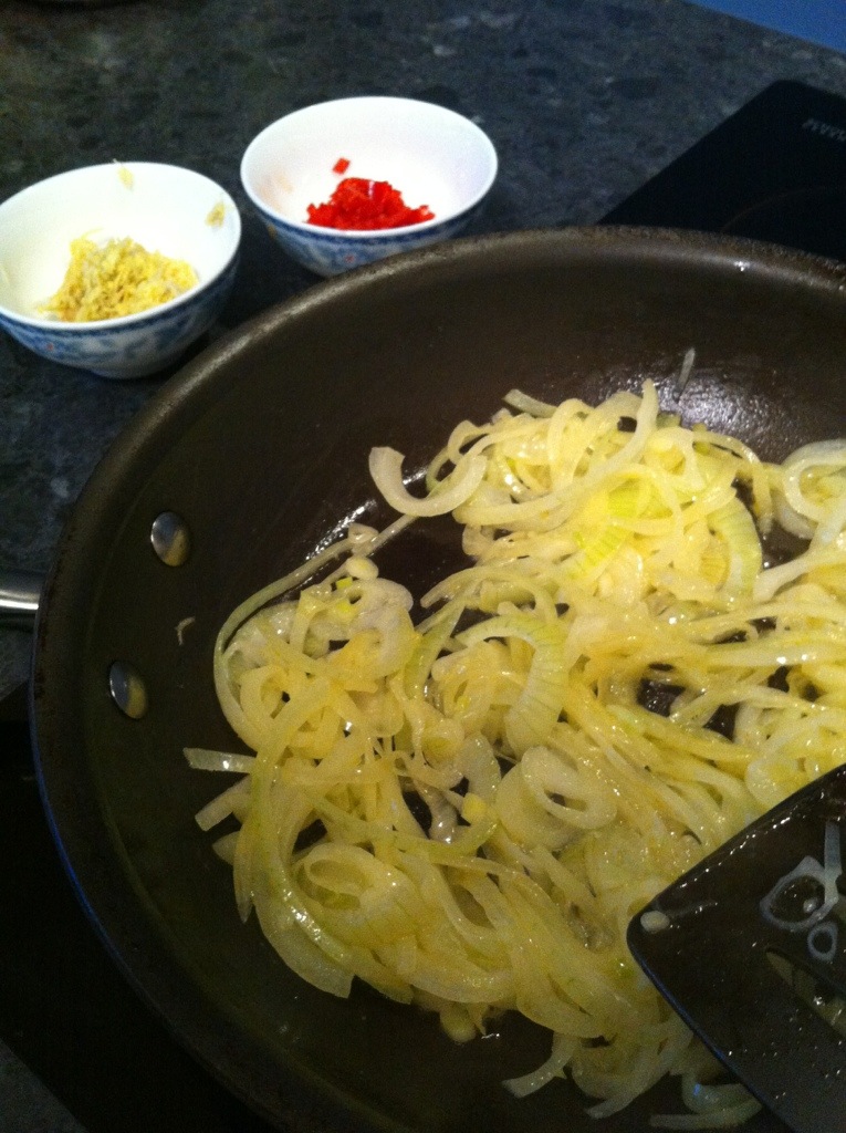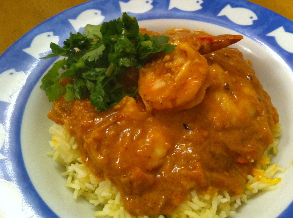 Prawn curry with pappadums. Yum!