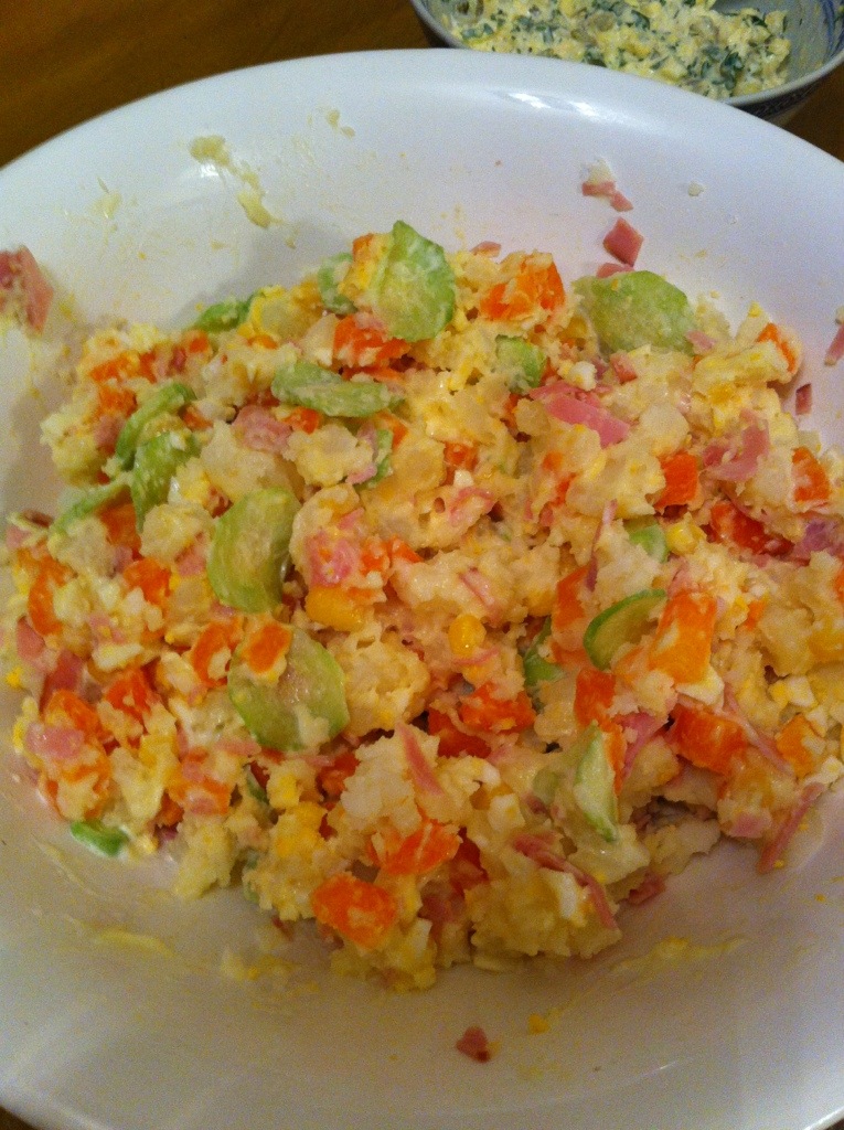 I’ve made these type of recipes before ( Japanese potato salad is the best) but today I used recipes from one of my favourite blogs – justonecookbook.com