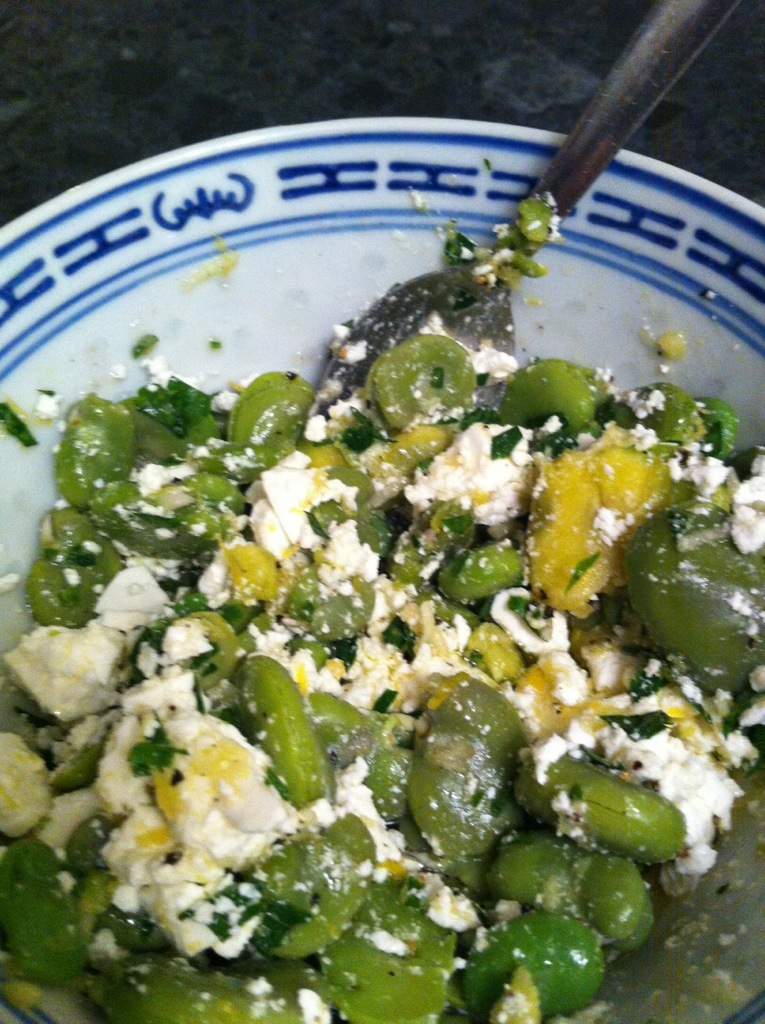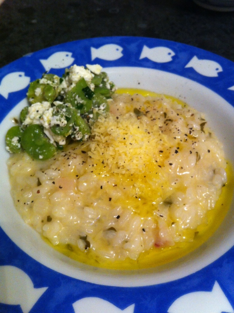 Lemon risotto and broad bean salad. Some of the broad beans were from my garden, but not all of them.